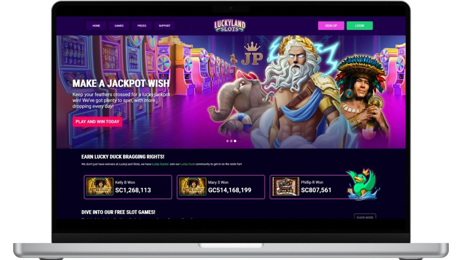 Players will immediately notice Luckyland’s awesome no-purchase bonus, which sits at 7,777 GC and 10 SC. Its daily bonuses are top-notch, averaging 1 SC and capping at 3 SC.